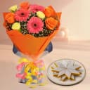Indulge someone special with a luxurious treat that speaks volumes! The Saffron Cashew Delight is a mesmerizing blend of flavors, harmoniously combined with an exquisite arrangement of seasonal blooms. Ideal for any celebration—be it birthdays, anniversaries, or simply to brighten up someone's day—this lovely package features 250 grams of scrumptious katli and a vibrant bouquet of 12 fresh flowers. It's the perfect gesture of affection and gratitude. Available exclusively in Ahmedabad, this gift promises to transform ordinary days into cherished memories.