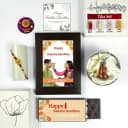 Honor the cherished connection between siblings with our Sibling Bond Celebration Set. This delightful assortment includes a mouthwatering Bhai chocolate bar, a personalized photo frame capturing your fondest memories, a beautiful Rakhi representing love, and a traditional Tika set for blessings. Complete with a protective guardian bell and a heartfelt greeting card, this gift is destined to make this Raksha Bandhan memorable!