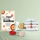 This Raksha Bandhan, celebrate the beautiful bond of sibling love with our Sibling Bonding Celebration Pack! This special collection showcases three beautifully designed Rakhis, each uniquely crafted to reflect the personality of your brothers, serving as exquisite tokens of love and protection. Made from premium materials, these Rakhis are designed to last and symbolize a lasting connection. To enhance your celebration, we've included three luxurious Ferrero Rocher chocolates, offering a delightful combination of creamy chocolate and crispy hazelnuts that will surely please everyone. Share these tasty treats amidst your festivities and create memorable moments of joy together. Completing the bundle is a complimentary set of Roli Tika Chawal, allowing you to honor traditional Raksha Bandhan rituals with ease and elegance. Your celebration will not just be delightful but also meaningful. Additionally, express your sentiments with a free message card included in the bundle, perfect for adding a personal touch to your heartfelt wishes. Make this Raksha Bandhan a day to remember with the Sibling Bonding Celebration Pack!