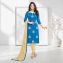 Laud a vivacious muliebrity with this Sober Splendor Santoon Silk Salwar Suit and occupy a niche in the docile heart. This Garb, of the name Naznin, exhibits a Cross-Neck Patterned Graphic Printed Dark Blue Kameez with Aureate Borders, a Lucid Golden Salwar and a Phosphorescent Dupatta.