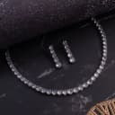 Introducing the Stunning Diamond Accent Necklace Set, designed with exquisite American Diamonds that are known for their long-lasting shine. This lightweight piece features carefully arranged round diamonds on a beautifully oxidized base, offering both comfort and resilience. Complete with matching earrings, this set is perfect for elevating any outfit, whether it's a casual day or a formal event.