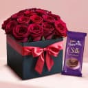 Present this Stylish Red Roses Box with Cadbury Silk Chocolate on Valentines Day and make your loved ones realize their worth in your life. This bright Rose Day arrangement holds 16 Red Roses in a Box with a Cadbury Silk Chocolate Bar (60 gr.)