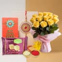 Start your day with a burst of brightness and warmth! This exquisite gift set includes a radiant bouquet of 12 vibrant yellow roses, symbolizing joy and affection. Alongside these blooms, indulge in 200 grams of scrumptious Soan Papdi, a delightful treat that elevates your mood. A beautifully crafted Rakhi adds a heartfelt touch, celebrating the cherished connections you hold dear. Perfect for any occasion, this combination is sure to spread joy and love, making mornings ever so delightful.
