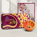 The Diwali Hamper consists of: - Diya - Sapphire Assorted Chocolates Box - A Free Message Card Included Celebrate the festival of lights with our exclusive Sweet Greetings: Diwali Chocolates N Card Hamper! This beautifully curated gift set is perfect for bringing joy and happiness to your loved ones. Inside the hamper, you will find a variety of treats and treasures that are sure to delight. Light up the festive season with the traditional Diya included in the hamper. This handcrafted lamp will add a warm glow to any home and create a peaceful ambiance. It symbolizes the victory of light over darkness, making it the perfect addition to your Diwali celebrations. Indulge in our irresistible Sapphire Assorted Chocolates Box. This delectable assortment of chocolates comes in a variety of flavors, from rich dark chocolate to creamy milk chocolate. Each bite is a heavenly experience, sure to satisfy any sweet craving. To make this gift even more special, we have included a free message card. Use it to send your heartfelt wishes and greetings to your loved ones. Whether you are near or far, this hamper is a thoughtful way to show your love and appreciation. Spread the festive cheer with our Sweet Greetings: Diwali Chocolates N Card Hamper and make this celebration one to remember. Order yours today and bring happiness and light into the lives of your loved ones.