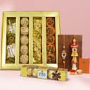 This gift combo contains: - A Box of Assorted Sweets (500 gms) - Bhaiya Bhabhi Rakhi - 4 pcs Ferrero Rocher Chocolates - Free Rakhi, Roli Tika N Chawal included Celebrate Raksha Bandhan with a heartwarming gift combo that brings together taste and togetherness. This thoughtfully curated set features a Bhaiya Bhabhi Rakhi to express your bond, a 500g box of assorted sweets to share the joy, and 4 pieces of Ferrero Rocher chocolates for a hint of indulgence. Accompanied by complimentary Rakhi, Roli Tika, and Chawal, this combo is perfect for making the day memorable with love, flavor, and a touch of sweetness.