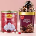 Celebration special wishes are best delivered by gifting this Tasty Haldiram Gulabjamun (1 kg) with Kwality Walls Chocolate Fudge Ice Cream (700 ml) for Bhai-Duj to your family and friends. This Bhaiya Duj gift also contains Free Roli Teeka n Chawal.