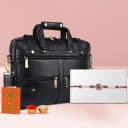 This gift combo contains: - A Rudraksh Rakhi by Rakhi Sutra (PRRK1410) - Expandable Leather Laptop Bag for Men (Black, Fits Upto 16 Laptop/MacBook, 1 Year Warranty) - Complimentary Roli Tika N Chawal - Complimentary Message Card with Free Rakhi Delight your sibling with our stylish gift combo, featuring a Rudraksh Rakhi and a versatile Expandable Leather Laptop Bag. The Rudraksh Rakhi by Rakhi Sutra carries deep meaning, representing love and protection—an ideal choice for Raksha Bandhan. The accompanying laptop bag is designed to accommodate laptops and MacBooks up to 16 inches, combining elegance with practicality. Its expandable feature ensures you can carry everything you need, whether for daily use or business trips. With its sleek black design, this bag is perfect for the modern man. On top of that, our set includes complimentary Roli Tika N Chawal and a personal Message Card with a free Rakhi, adding a sweet touch to your gift. Celebrate your bond with this thoughtful combo that’s sure to impress this Raksha Bandhan!