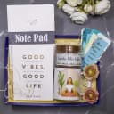 Embrace tranquility with the Tranquil Harmony Set! Begin your morning with reflective writing in a chic white notepad, then uplift your spirit with Vex King’s inspiring read, "Good Vibes, Good Life." Sip your favorite beverage from an elegantly designed yoga-themed mug along with premium instant coffee. Enjoy your literary journey with unique handmade bookmarks and keep everything in check with a stylish reusable tray. Ideal for enhancing mindfulness and serenity, this set is a wonderful present for personal growth or to share with friends. Experience daily positivity with this exceptional collection!