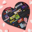 This is a gift of: - A Heart Shaped Personalized Message Card - 1 Choco Pie - 1 Snickers - 1 Bounty - 1 Cadbury Gems - 1 Galaxy Chocolate Bar - 1 Cadbury Dairy Milk - 1 Nestle Milky Bar - 1 Pulse candy - 1 Five Star Chocolate - 1 Double Mint - 1 Perk Bar - 1 Kit Kat - 1 Happydent Create lasting memories with our Trendy Heart Shaped Chocolate Message Card. Open the heart-shaped message card to reveal a delightful assortment of treats. Experience the crisp and creamy goodness of Kit Kat, indulge in the rich and velvety Five Star Chocolate, and let the other surprises take you on a journey of pure bliss. Share this gift with loved ones and savor each moment together. Details needed: Send your message with your Alpha-numeric order id at: designphotocake@gmail.com or Whatsapp at +91 7980092029.
