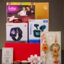 This gift includes: - A Kundan Bhaiya Bhabhi Rakhi Set by Rakhi Sutra (BBVL9716) - boAt Wave Style Smart Watch - pTron Bassbuds Duo in-Ear Bluetooth 5.1 Wireless Headphones - Kaju Barfi (100g) - Reusable Gift Box - Complimentary Roli Tika N Chawal - Complimentary Message Card With Free Rakhi Looking for the perfect way to express your love this Raksha Bandhan? Look no further than our Ultimate Raksha Bandhan Gift Set! This selection features a stunning Kundan Bhaiya Bhabhi Rakhi Set that exudes elegance and care. Combined with the stylish boAt Wave Style Smart Watch, this gift empowers your loved ones to stay fashionable and connected. Dont miss the pTron Bassbuds Duo in-Ear Bluetooth headphones, ensuring they can enjoy crystal-clear music wirelessly wherever they go. To satisfy their sweet tooth, we’ve included 100g of delectable Kaju Barfi, an all-time favorite. The entire gift comes in a charming, reusable gift box, perfect for any occasion. And as a thoughtful touch, we provide complimentary Roli Tika N Chawal along with a message card, making this collection an ideal gift for celebrating your cherished bonds!