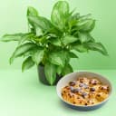 Experience the harmonious blend of nature and taste with the Verdant Bliss & Gourmet Indulgence Gift. This exquisite package features the stunning Aglaonema Modestum plant, celebrated for its air-purifying abilities, elegantly showcased in a sleek black pot. Not only does it enhance indoor environments, but it also increases humidity for a healthier living space. To complement this botanical beauty, enjoy a scrumptious 250g of Balaram Mullick Baked Rasgulla, a traditional delicacy that simply melts in the mouth. This heartfelt offer is the ideal gift for any celebration, signifying care and joy.