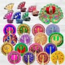Elevate your festive celebrations with this vibrant Ladoo Gopal Attire Set. Perfectly curated to spread joy, this six-piece collection features an exquisite Mayur embroidered dress paired with five colorful Ladoo Gopal Poshaks and six charming pagdis. Crafted from luxurious silk, it adds a touch of elegance to any festive occasion or home decor. Delight your loved ones with this stunning ensemble that embodies tradition and warmth.