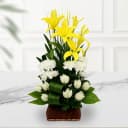 Unleash the beauty of nature with the Vibrant Lily Harmony arrangement—a delightful gift that conveys heartfelt sentiment. This stunning basket combines radiant yellow lilies, radiating joy, with pristine white lilies, symbolizing elegance and purity. Ideal for anniversaries, birthdays, or as a surprise gesture, this floral collection is guaranteed to bring smiles and create lasting memories. Ordering this arrangement online is simple, allowing you to express your emotions effortlessly.