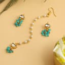 Elevate your festive attire with our Vibrant Orange Gemstone Traditional Jewelry Set, featuring exquisitely crafted drop earrings and a captivating Maang Tikka. The fusion of gold-toned metal and striking orange stone makes it a splendid choice for any celebration.