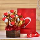 This valentine gift combo contains: - 7 Pcs Homemade Chocolates - Arranged in a Wooden Pot - A Valentines Day Card Indulge in a taste of romance with our Whimsical Chocolaty Arrangement in Wooden Pot, A Taste of Romance. Embrace the essence of Valentines Day with our artisanal chocolate selection, lovingly nestled in a whimsical wooden pot. The valentines day card will add an extra elegance to this combo. Each piece is crafted with passion and care, creating a truly magical experience for your special someone.