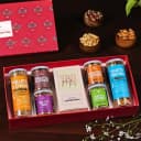 This Mothers Day Special gift box contains: - Khatta Meetha (120g) - Roasted Almonds (80g) - Oats N Moong (75g) - Roasted Cashews (75g) - Millets N Chana (55g) - Nutty Mix with Dry Fruits (50g) - A Custom Made Pocket Diary - A Loykas Chocolate Almond Brittle - Mothers Day Greeting Card - All Packed in a Gold Foiled Gift Box Treat your loved ones to a luxurious and thoughtful surprise with our Wholesome Mothers Day Indulgence Gift Box. This premium gift box is filled with a delightful assortment of nutritious treats, from the tangy Khatta Meetha to the crunchy Roasted Almonds and creamy Roasted Cashews. Your recipient will also enjoy the wholesome Oats N Moong mix and the flavorful Millets N Chana blend. For a touch of indulgence, weve included a Nutty Mix with Dry Fruits and a delectable Loykas Chocolate Almond Brittle. To add a personal touch, the set comes with a custom-made pocket diary where they can jot down their thoughts and dreams. Complete the experience with a heartfelt Mothers Day Greeting Card. Elevate your gifting game with this exquisite gift box, perfect for celebrating Mothers Day or any special occasion.