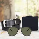 Merge your love with this wonderful Gift Hamper for Men and send it to your dearest ones. This beautiful combo includes 1 Rich Born Leather Wallet (Black, Multi Pocket), 1 Buffalo Belt (Black) and 1 Fashion Sunglass (Aviator Style).