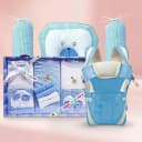 Send lovely wishes with this Wonderful Gift of Baby Clothing Set with Cotton Pillows N Baby Carrier and spread love among the people you care for. This Combo comprises of: 1. a. Item: 13 pc Dress Set b. Age Group: Ideal for 0-3 Months c. Color: Blue d. Fabric: Cotton 2. a. Item: Super Minis Cotton Baby Head Pillow with 2 Side Pillow b. Color: Sky Blue c. Age Group: 0-12 Months 3. a. Item: Baby Carrier b. Color: Sky Blue c. Material: Polyester Note:- Country of Origin: India