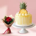 This gift combo has: - A Red Rose - Pineapple Cake (1Lb) Beauty with taste, exactly that is what you are to deliver with this yummy 1 Lb Pineapple Cake with single Red Rose and celebrate your occasion in a wonderful way.