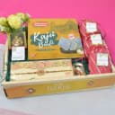 This is a gift of: - 1 pc Rakhi (Rakhi Code: PRRK8260) - Vignesh Ganesh - Kaju Barfi (250g) - Apricots (100g) - Dry Figs (100g) - Pistachios (100g) - Complimentary Roli Tika & Chawal Thali included - Presents are arranged in a beautiful Tray - All these comes beautifully packed in a reusable Signature Outer Box Celebrate Raksha Bandhan with a gift that combines tradition, taste, and blessings. This beautifully curated hamper features an elegant Rakhi (Code: PRRK8260) along with a sacred Vignesh Ganesh idol to invoke divine blessings. The box is filled with premium delights including 250g of rich Kaju Barfi, 100g of succulent apricots, 100g of sweet dry figs, and 100g of crunchy pistachios. A complimentary Roli Tika and Chawal Thali adds a traditional touch, while all items are gracefully arranged on a stylish tray and packed in a reusable Signature Outer Box. Its the perfect blend of devotion, love, and celebration.