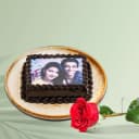Adorable Gift of Single Red Rose with Chocolate Photo Cake