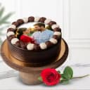 Adorable Gift of Single Red Rose with Chocolate Photo Cake