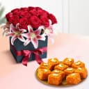 Akhrot Barfi from Mithas Delicious Sweets with Designer Flower Arrangement