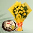 Alluring Yellow Roses Bouquet n Loving Heart Pinata Cake Combo