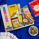Splash liveliness into the lives of the people you care about by gifting this Amazing Cutting Masala Chai Hamper for Diwali for Diwali that helps instantly rejuvenate the mood. This Deepavali gift hamper contains: 1. Girnar Instant Chai Masala (140g) 2. Haldiram Methi Mathri (200g) 3. Malkist Crunchy Layer Cheese Crackers (138g) 4. Steel Glass for Cutting Chai (Set of 2pcs) 5. Mattel Uno Playing Card Game 6. Wooden Zenga Blocks Set 7. Playing Cards 8. In a Wooden Tray