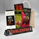 This Hamper features- - Toblerone Bitter Chocolate (100 gm) - Cadbury Temptation Rum & Raisin (72 gm) - Cadbury Bournville Canberry (80 gm) - Lindt Excellence 80% Cocao - Amul Dark Chocolate (150 gm) - Eco Friendly Jute Gift Bag (Reusable) This collection offers a journey through rich chocolate experiences, perfect for a discerning palate. Enjoy the distinct taste of Toblerone Bitter Chocolate, the fruity notes of Cadbury Temptation Rum & Raisin, and the tartness of Cadbury Bournville Cranberry. Discover the intense cocoa depth of Lindt Excellence 80% Cacao, complemented by the smooth texture of Amul Dark Chocolate. All these delightful treats are presented in a practical and reusable Eco-Friendly Jute Gift Bag.