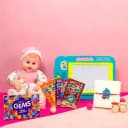 Product Details: - Annie Brothers Doll - Drawing Board - Cadbury Gems 25.28g - Magic Pop (5.5g x 3 pcs) - Krishna Rakhi - Complimentary Rakhi with Message Card - Free Roli Tika N Chawal (Design Code: KRKRI5691) Celebrate the spirit of Raksha Bandhan with this charming gift combo that blends tradition with fun. Featuring a delightful Annie Brothers Doll and an engaging Drawing Board, this set is perfect for sparking creativity and joy in little ones. To sweeten the celebration, it includes a pack of colorful Cadbury Gems (25.28g) and three fizzy Magic Pop treats (5.5g each), sure to excite young taste buds. At the heart of this gift is a beautifully crafted Krishna Rakhi that symbolizes love, protection, and tradition. A complimentary Rakhi with a heartfelt message card adds a special touch, making it a memorable keepsake. The set also includes free Roli Tika and Chawal, ensuring that every traditional ritual is honored with sincerity. (Design Code: KRKRI5691)