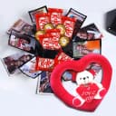 Begin an everlasting relation on this Valentines Day by sending this gift of Amazing Personalized Hexagon Explosion Box of Chocolates with a Teddy Heart with a beautiful note of love for your Valentine. This is a gift combo of a Hexagon Explosion Box of 4pc Ferrero Rocher N 10 Kit Kat Chocolates with 6 Personalized Photos and a Teddy inside a Heart Details Needed:To personalize the gift, please share 6 Digital Photos or Customized Messages with us. Write to us with your Alpha-numeric order id at: designphotocake@gmail.com or Whatsapp us at +91 9230721098..