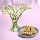 Buy Online to Send 10pc Amrita Kumbha from K.C.Das with a Rajnigandha Stems in a Glass Vase for your known N loved people. (Only Available at Kolkata)
