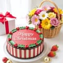 Love is best expressed by sending this gift of Angelic Strawberry Cake 1 lb with 12 Colorful Flower Basket for Christmas to your near and dear ones.