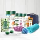 It consists of - - Biotique Bio Apricot Refreshing Body Wash (190ml) - Biotique Bio Papaya Revitalizing Tan Removal Scrub (50g) - Biotique Bio Honey Gel Face Wash for All Skin Types (100 ml) - Biotique Bio Cucumber Pore Tightening Toner (120ml) - Biotique Bio Mountain Ebony Vitalizing Serum for Falling Hair Intensive Hair Growth Treatment (120ML) - Biotique Bio Bhringraj Fresh Growth Therapeutic Oil (120ml) - Biotique Bio Kelp Fresh Growth Protein Shampoo (190ml) - Soft Loofah - Shower Cap - Small Face Towel - 6 pcs Iris Scented Tea lights (Green Tean N Bamboo fragrance) - Waterproof Toiletry Kit Bag This thoughtfully curated Biotique Herbal Wellness Kit offers a complete head-to-toe care experience with a range of natural formulations. It includes the Bio Apricot Refreshing Body Wash (190ml) for a gentle cleanse, and the Bio Papaya Tan Removal Scrub (50g) to exfoliate and reveal brighter skin. The Bio Honey Gel Face Wash (100ml) suits all skin types, while the Bio Cucumber Pore Tightening Toner (120ml) helps refresh and tone the skin. Hair care essentials feature the Bio Mountain Ebony Vitalizing Serum (120ml) to support hair strength and the Bio Bhringraj Therapeutic Oil (120ml) to nourish roots. Also included is the Bio Kelp Protein Shampoo (190ml) for promoting healthy hair growth. Complementing the experience are a soft loofah, a shower cap, a face towel, 6 soothing Iris Scented Tea Lights with Green Tea & Bamboo fragrance, and a waterproof toiletry kit bag for easy organization.