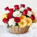 Gift this special Arrangement of 24 Multi-Hued Flowers consisting of 14 Roses, 5 Carnations and 5 Gerberas to your near and dear ones and make them extremely happy.