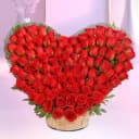 Arresting Heart Shape Arrangement of 100 Red Roses