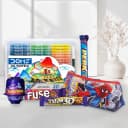 Ignite your child's imagination and taste buds with the Spiderman Art and Chocolate Bundle! This delightful set combines a uniquely designed Spiderman pencil bag with a rainbow of Doms colors and a selection of Cadbury chocolates. The pyramid-shaped pencil bag offers great portability for school or creative projects, while the vibrant colors encourage artistic exploration. Plus, the sweet Cadbury treats add the perfect finishing touch for any young artist's day.