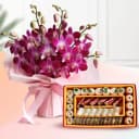 Shop N Send Assorted Dry Fruit Sweets (250 gm) from Adyar Ananda Bhawan with 10 pcs Orchid Bouquet for wishing them on their special day. (Only Available at Chennai)