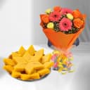 Deliver Badam Cake (250 gm) from Adyar Ananda Bhawan with 12 pcs Seasonal Flower Bouquet to surprise on special occasion. (Only Available at Chennai)