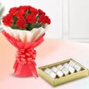 Shop Online for 9pc Badam Kathli from Sri Krishna Sweets with 12pcs Red Carnation Tissue Wrapped Bouquet N send it to your family N friends. (Only Available at Chennai)