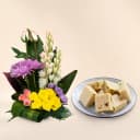 Badam Mewa from Chitale Bandhu Mithaiwale with a Mixed Flower Arrangement