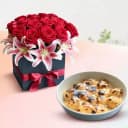 Baked Rasgulla from Balaram Mullick with Designer Flower Arrangement