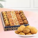 This gift combo includes: - Mixed Baklava Box (225g) - Daal Kachori (8 Pcs) Savor the delightful contrast of flavors with this unique gift combo featuring a 225-gram box of Mixed Baklava and 8 pieces of Daal Kachori. The Mixed Baklava offers a luxurious taste of the Middle East with its layers of flaky pastry, crunchy nuts, and sweet syrup, providing a rich and indulgent experience in every bite. Complementing the sweetness of the baklava is Daal Kachori, a traditional Indian snack with a crispy outer shell and a spicy lentil filling. This combination of sweet and savory makes for an exciting culinary journey, perfect for those who appreciate a variety of flavors. Ideal for festive occasions, this gift combo is a thoughtful way to share the joy of diverse and delicious treats with loved ones.