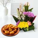 Balushahi from Karachi Sweet Mart with a Mixed Flower Arrangement