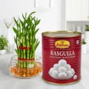 Add a touch of joy to any occasion with this delightful gift combination! Delight your loved ones with soft and syrupy Haldirams Rasgulla, complemented by a beautiful 2 Tier Lucky Bamboo Plant nestled in a stylish glass pot. This thoughtful duo not only satisfies sweet cravings but also symbolizes abundance and prosperity, conveying your warmest wishes. Watch their faces light up with joy as they receive this perfect blend of sweetness and good fortune!