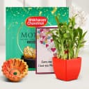 The Diwali Hamper consists of: - Diya - Motipak from Bhikharam Chandmal 500g - Three Tier Lucky Bamboo Plant with Pot - A Free Message Card Immerse yourself in the joyous atmosphere of Diwali with our vibrant Bamboo Plant And Motipak Extravaganza. This thoughtful assortment is carefully curated to bring an array of delights to your festivities. At the heart of the hamper is a radiant diya, beautifully handcrafted to exude warmth and illuminate your home with its gentle glow. Adding a touch of traditional sweetness, we have included 500g of Bhikharam Chandmals legendary Motipak, a delectable Indian sweet that will captivate your taste buds with its richness. To symbolize growth and prosperity, we have included a stunning Three Tier Lucky Bamboo Plant. This elegant plant is rooted in a vibrant pot, bringing an element of nature into your home and filling it with positive energy. As an added bonus, we have also included a free message card for you to personalize your gift and spread the festive cheer to your loved ones. The Bamboo Plant And Motipak Extravaganza captures the essence of this joyous occasion, combining traditional elements with a touch of contemporary elegance. It is the perfect gift to treasure and share the spirit of Diwali with your near and dear ones.