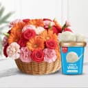 Beautiful Arrangement of Mixed Flower with Vanilla Ice Cream from Kwality Walls