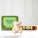 Shop Bikaneri Burfi (500 Gms) with a 6in Teddy N 4pcs Ferrero Rocher Chocolate Pack to wish your loved ones on their special days (Only Available at Delhi)