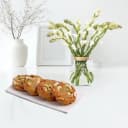Bikanervala Halwa Sohan with a Rajnigandha Stems in a Glass Vase